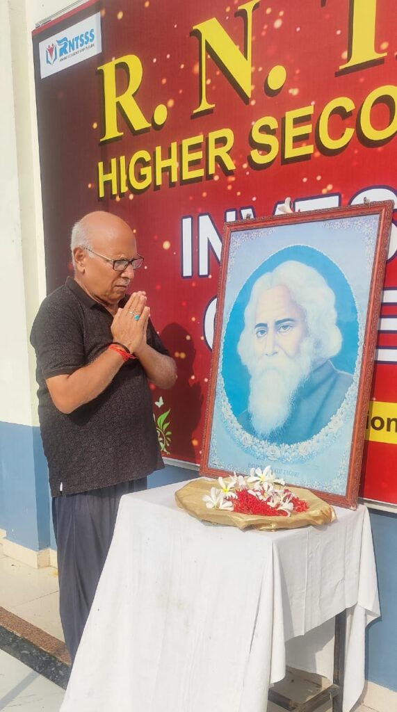विद्यालय के प्रबंधक डॉ. सिंह जी ने भाव भीनी श्रद्धांजलि देते हुएअपने संबोधन में कहा कि टैगोर जी के आचरण व सिद्धांतों के आधार पर ही एक सशक्त समाज का निर्माण संभव है।उन्होंने ‘एकला चलो रे’ नारे पर विशेष बल देते हुए बताया कि श्रेष्ठ कर्म अकेले ही किया जाता है,इसके लिए किसी साथी की आवश्यकता नहीं पड़ती है। श्रेष्ठ कर्म करके समाज के लिए आदर्श स्थापित करना ही मानव मात्र का संकल्प होना चाहिए।