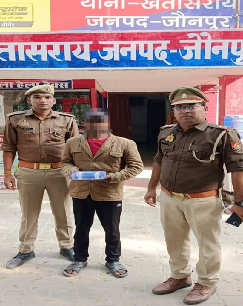 जौनपुर – डा0 अजय पाल शर्मा, पुलिस अधीक्षक जनपद जौनपुर द्वारा जनपद मे अपराध की रोकथाम व अपराधियों की गिरफ्तारी हेतु चलाये जा रहे अभियान के क्रम मे व अपर पुलिस अधीक्षक नगर जौनपुर, श्री अरबिन्द कुमार वर्मा एवं क्षेत्राधिकारी शाहगंज, श्री अजीत सिंह चौहान के निकट पर्यवेक्षण व थानाध्यक्ष श्री रामाश्रय राय के नेतृत्तव में उ0नि0 मो0 तारिक अंसारी थाना खेतासराय मय पुलिस टीम द्वारा थाना स्थानीय पर पंजीकृत मु0अ0सं0-207/2024 धारा 303(2) बीएनएस थाना खेतासराय जनपद जौनपुर का सफल अनावरण करते हुये चोरी गयी मोबाइल के साथ अभियुक्त 1. वीरेन्द्र राजभर पुत्र झिनकू राजभर निवासी गोधना थाना खेतासराय जिला जौनपुर को मुखबीर की सूचना पर आजाद नहर पुलिया से गिरफ्तार कर चोरी गयी मोबाइल को बरामद किया गया तथा मुकदमा उपरोक्त में धारा 317(2) बीएनएस की बढोत्तरी करते हुये अभियुक्त को नियमानुसार आवश्यक कार्यवाही करते हुये मा0 न्यायलय भेजा गया ।