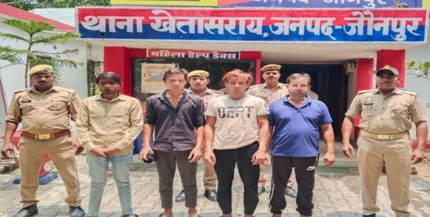 जौनपुर : जिला पुलिस प्रमुख डा० अजय पाल शर्मा द्वारा जनपद में अपराध की रोकथाम एवं अपराधियों की गिरफ्तारी हेतु चलाए जा रहे अभियान के क्रम में थाना शाहगंज की पुलिस टीम द्वारा थाना स्थानीय पर पंजीकृत मु0अ0स0- 107/ 2024 धारा 147/ 149/ 323/ 324/ 504/ 307 भा0द0वि0 में वांछित अभियुक्तगण 1- तबरेज पुत्र सफीउद्ददीन, 2- तैय्यब पुत्र मोहिउद्दीन, 3- मो0 यासिर पुत्र जुम्मन उर्फ अनीनुद्दीदन, 4- मोहम्मद सालिम पुत्र जुम्मन उर्फ अमीनुद्दीन निवासी मानीकला थाना खेतासराय जनपद जौनपुर को आज 08. जुलाई 2024 को रेलवे स्टेशन मानीकला से गिरफ्तार किया गया गिरफ्तार कर आवश्यक विधिक कार्यवाही करते हुये अभियुक्तगणो को सम्बन्धित न्यायालय भेजा जा रहा है।