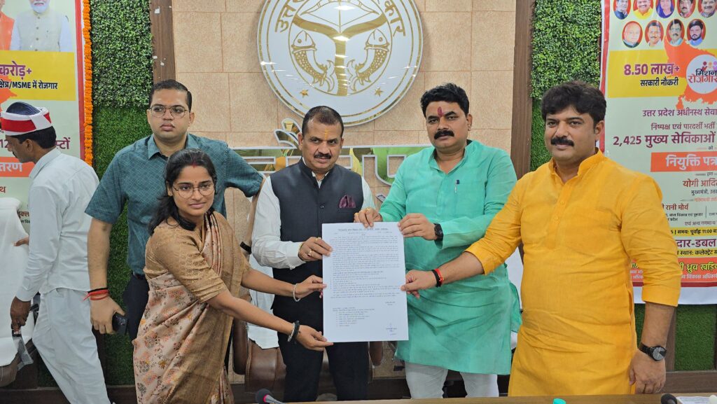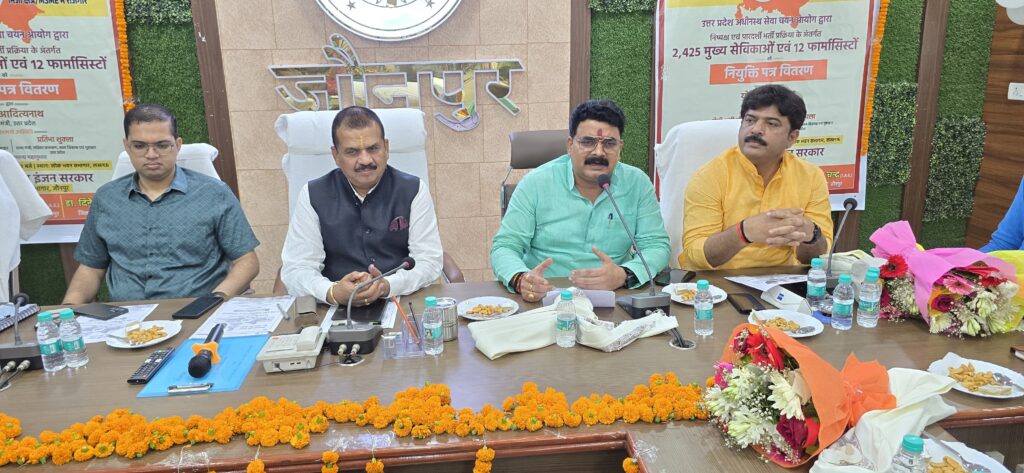 जौनपुर 27 अगस्त— उत्तर प्रदेश अधीनस्थ सेवा चयन आयोग द्वारा आयोजित निष्पक्ष एवं पारदर्शी भर्ती प्रक्रिया के अंतर्गत प्रदेश में 2425 मुख्य सेविकाओं एवं 12 फार्मासिस्टों के नियुक्ति पत्र वितरण का कार्यक्रम मुख्यमंत्री उत्तर प्रदेश योगी आदित्यनाथ जी महाराज की गरिमामयी उपस्थिति में लोक भवन सभागार लखनऊ में आयोजित किया गया।