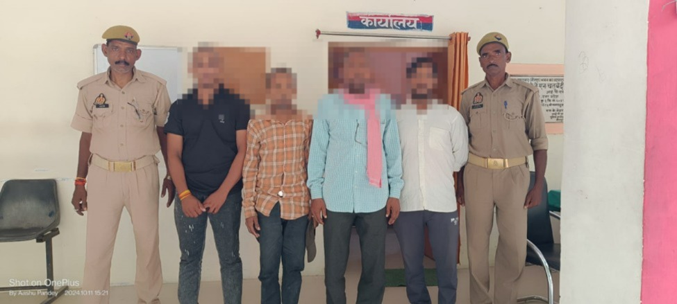 जौनपुर– जिला पुलिस प्रमुख डा0 अजय पाल शर्मा द्वारा अपराध की रोकथाम एवं अपराधियों की गिरफ्तारी हेतु चलाये जा रहे विशेष अभियान के क्रम मे अपर पुलिस अधीक्षक(नगर) के दिशा निर्देशन एवं क्षेत्राधिकारी नगर के पर्यवेक्षण में थाना जफराबाद पुलिस टीम द्वारा प्रभारी निरीक्षक जे पी यादव के मार्गदर्शन में कोबरा 10 द्वारा क्षेत्र भ्रमण के दौरान ग्राम मोहिद्दीनपुर व रत्तीपुर से क्रमशः आबादी की जमीन पर हैण्डपम्प लगाने व जमीन के विवाद को लेकर कहासुनी करने वाले 04 नफर अभियुक्तों को गिरफ्तार किया गया।