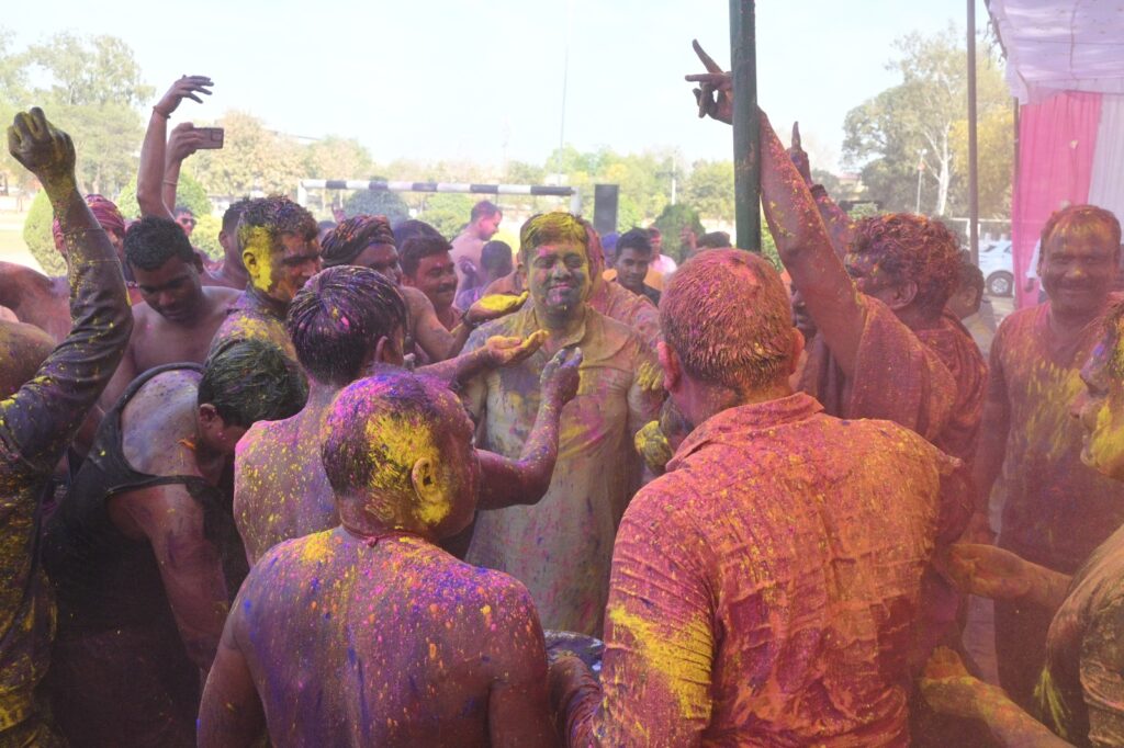 जौनपुर –होली पर्व के दूसरे दिन पुलिस लाइन, जौनपुर में धूमधाम से होली मिलन समारोह का आयोजन किया गया। जिला जज ने डीएम एसपी, अपर पुलिस अधीक्षक नगर, अपर पुलिस अधीक्षक ग्रामीण, सर्किल के क्षेत्राधिकारी, थाना प्रभारी ,प्रतिसार निरीक्षक व पुलिस के अन्य अधिकारी/ कर्मचारीगण द्वारा एक दूसरे पर फूलों की बारिश कर एवं अबीर-गुलाल लगाकर होली की शुभकामनाएं एवं बधाई दी गयी। इस दौरान लोकगीत गायकों द्वारा फागुन गीत की प्रस्तुति की गयी।