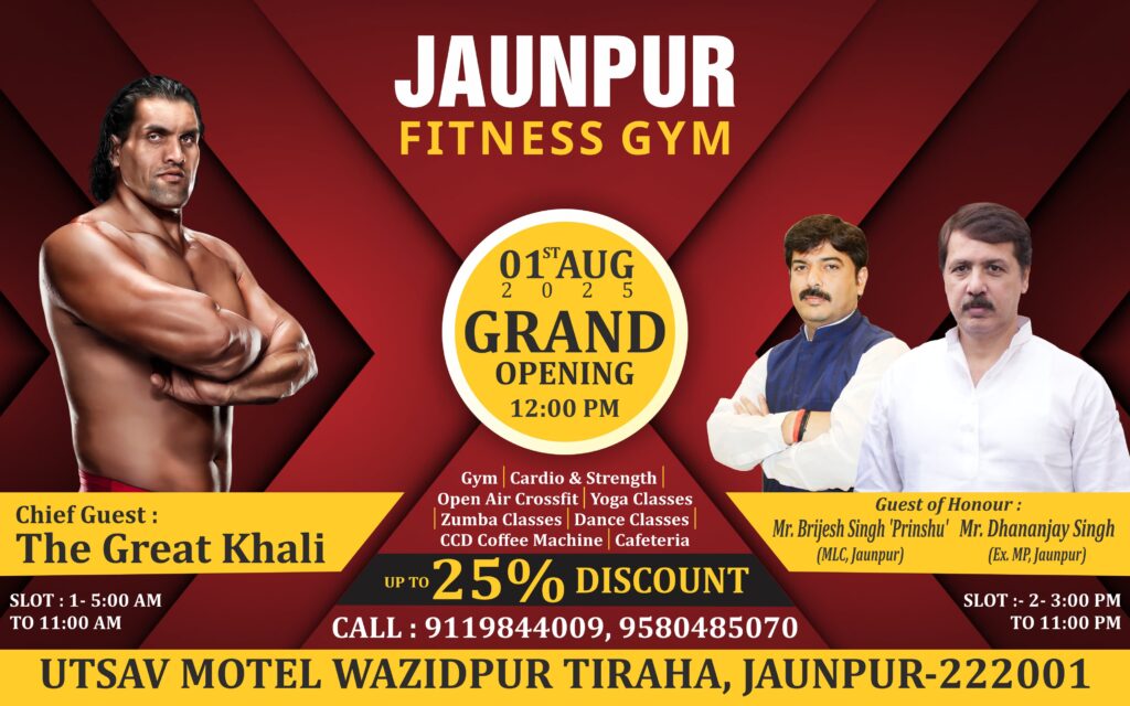 जौनपुर। नगर के वाजिदपुर तिराहे के पास स्थित उत्सव मोटल में जौनपुर फिटनेस जिम का उद्घाटन 1 अगस्त को दोपहर 12 बजे से होगा। इसी को लेकर डब्ल्यूडब्ल्यूई में पहले भारतीय मूल के विश्व चैम्पियन रहे पहलवान व अभिनेता द ग्रेट खली का आगमन होगा। जौनपुर फिटनेस जिम का शुभारम्भ द ग्रेट खली, पूर्व सांसद धनंजय सिंह एवं एमएलसी बृजेश सिंह करेंगे। उक्त जानकारी देते हुये फर्म के अधिष्ठाता आशुतोष सिंह एवं राहुल सिंह ने संयुक्त रूप से बताया कि यह जिम जनपद का अत्याधुनिक सुविधाओं वाला जिम है जिसमें जिम से सम्बन्धित लगभग सभी उपकरणों की सुविधा दी गयी है। यहां कार्डियो एण्ड स्ट्रेंथ, ओपन एयर क्रासफीट, योगा क्लासेस, जुम्बा क्लासेस, डांस क्लासेस, सीसीडी कॉफी मशीन, कैफेटेरिया की व्यवस्था उपलब्ध है।