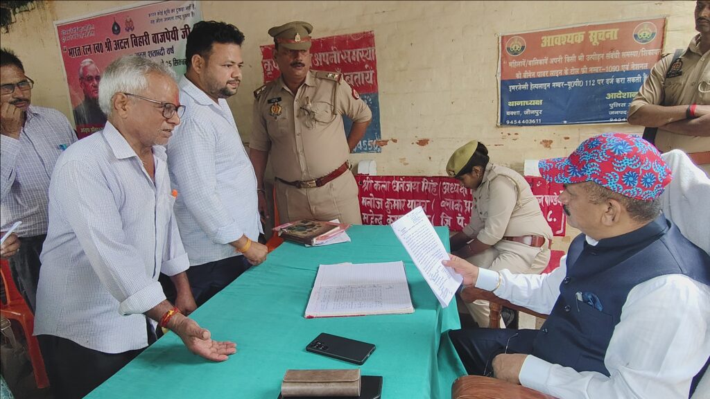 जौनपुर – जिलाधिकारी डॉ0 दिनेश चन्द्र की अध्यक्षता में थाना बक्सा में थाना समाधान दिवस का आयोजन किया गया। फरियादियों की शिकायतों को सुनते हुए जिलाधिकारी ने सम्बन्धित अधिकारियों को निस्तारण के निर्देश दिए।
