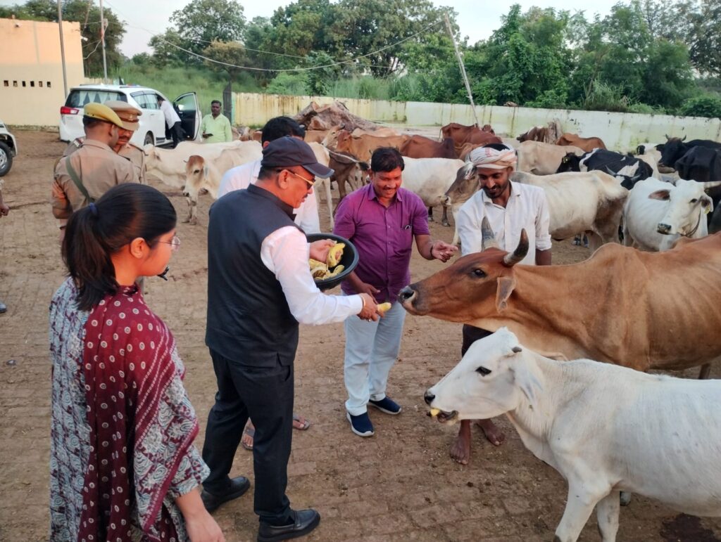 निरीक्षण के दौरान जिलाधिकारी के द्वारा विशेष पूजाअर्चना कर गो-आश्रय स्थल की व्यवस्थाओं का जायजा लिया गया। इस दौरान उन्होंने गोवंशो को केला और गुड़ भी खिलाया।