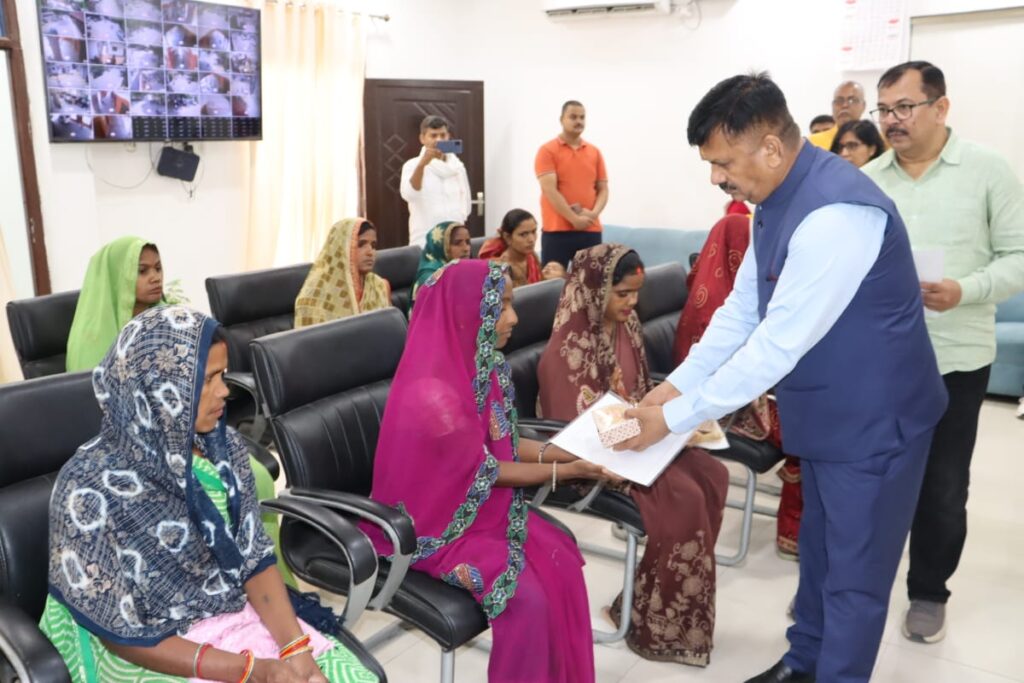 जौनपुर। जिलाधिकारी डा0 दिनेश चन्द्र ने कलेक्ट्रेट सभागार में जीरो पॉवर्टी अभियान के अन्तर्गत चिन्हित 10 अन्त्योदय/पात्र गृहस्थी राशन कार्ड के लाभार्थी सुनीता पत्नी भोलेनाथ सिंह, मालती पत्नी रामवचन, फातमा खातून पत्नी रियाज, सुनीता पत्नी राजनाथ, मिन्ता पत्नी भैया लाल, गुड़िया बानो पत्नी सोनू शाह, रेखा पत्नी विनोद, सरिता पत्नी गोविन्द, रेनू गौतम पत्नी अनिल कुमार, सुशीला पत्नी लालजी को राशन कार्ड की प्रति और मिस्ठान उपलब्ध करायी गयी।