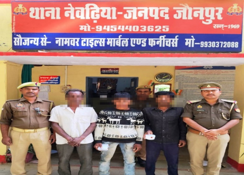 जौनपुर – डा0 अजय पाल शर्मा, पुलिस अधीक्षक जनपद जौनपुर द्वारा अपराध एवं अपराधियों के विरुद्ध चलाये जा रहे अभियान के क्रम मे अपर पुलिस अधीक्षक ग्रामीण, श्री शैलेन्द्र कुमार सिंह के निर्देशन एवं क्षेत्राधिकारी मडियाहूँ के के कुशल पर्यवेक्षण में दिनांक-14/15.11.2024 की रात्रि समय करीब 02.00 बजे थाना स्थानीय पर सूचना प्राप्त हुई कि कुछ चोर वादी मुकदमा मो0 अजमेरी पुत्र जलाल अहमद निवासी ग्राम शेखपुर थाना नेवढ़िया जनपद जौनपुर के घर मे घुसकर चोरी किये है किन्तु पारिवारी जन द्वारा जग जाने के कारण ज्यादा चोरी नही कर पाये है, जिस पर मु0अ0सं0-182/24 धारा-305/331(4)/317(2) बीएनसएस पंजीकृत करते हुए थाना स्थानीय द्वारा तुरन्त कार्यवाही करते हुए थानाध्यक्ष नेवढ़िया श्री अमित कुमार पाण्डेय व चौकी इन्चार्ज भाऊपुर श्री सुग्रीव प्रसाद गुप्ता द्वारा चेकिंग व अज्ञात चोर की धर पकड़ करते हुए तत्काल घटना का सफल अनावरण करते हुए अभियुक्त गण 1. गुड्डू उर्फ धनी निवासी कहड़ौरा भरथीपुर थाना सुरेरी जनपद जौनपुर 2. बुद्धू पुत्र धनी निवासी कहड़ौ भऱथीपुर थाना सुरेरी जनपद जौनपुर 3.राजेन्द्र पुत्र मोखरी निवासी कहड़ौरा भरथीपुर थाना सुरेरी जनपद जौनपुर व एक बाल अपचारी को भाऊपुर कब्रिस्तान के पास से गिरफ्तार कर लिया गया। अभियुक्त गण के कब्जे से चोरी का माल बरामद हुआ। सभी अभियुक्त गण व बाल अपचारी को विधिक कार्यवाही करते हुए न्यायिक हिरासत मे भेजा जा रहा है।