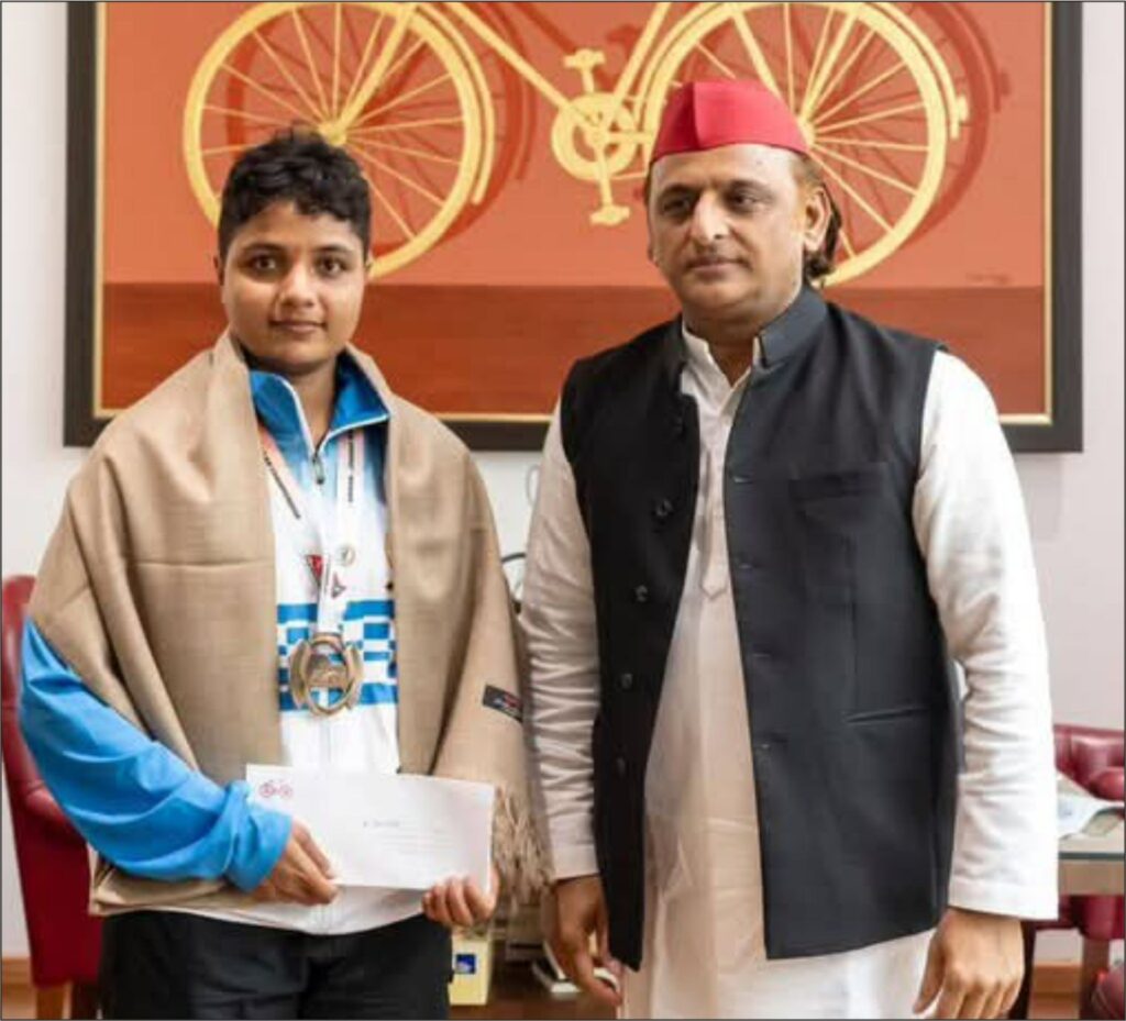 बता दें कि जौनपुर की दो प्रतिभा हैं जिन्हें एक बहादुर कुश्ती चैम्पियन नम्रता यादव हैं जिन्होंने एशियन चैम्पियनशिप में भारत के लिये कांस्य मेडल जीत करके विश्व में भारत का नाम रोशन किया है। वहीं यूपी बीएड प्रवेश परीक्षा में 4 लाख में से 3 लाख अभ्यर्थी सफल हुये जिसमें जौनपुर की शिवांगी यादव तृतीय टापर हैं। नम्रता एवं शिवांगी से भेंट करके समाजवादी पार्टी के राष्ट्रीय अध्यक्ष श्री यादव ने सम्मानित करने के साथ आशीर्वाद देते हुये उनके उज्जवल भविष्य की कामना भी किया और 1—1 लाख रूपये के चेक के साथ अंगवस्त्र देकर सम्मानित किया। साथ ही नम्रता के प्रशिक्षक को भी सम्मानित किया।