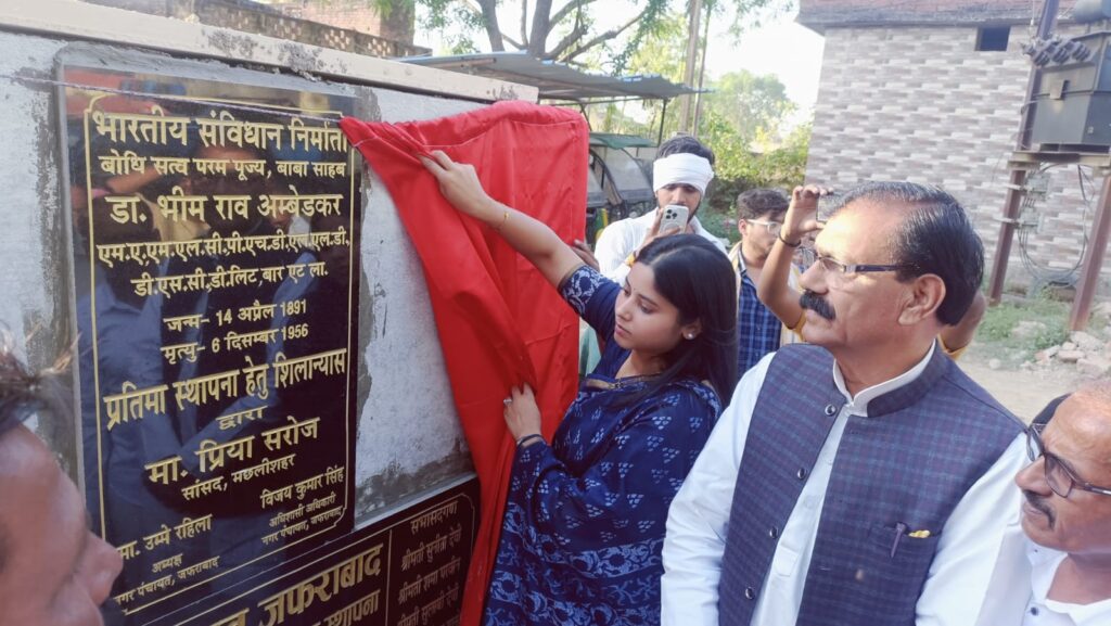 जौनपुर – नगर पंचायत जफराबाद में बाबा साहब डॉ. भीमराव अंबेडकर की जयंती हर्षोल्लास के साथ मनाई गई। इस अवसर पर नगर पंचायत के मुख्य द्वार से एक भव्य शोभायात्रा निकाली गई, जिसमें बड़ी संख्या में स्थानीय नागरिक और गणमान्य व्यक्ति सम्मिलित हुए। शोभायात्रा के दौरान पूरा क्षेत्र ‘बाबा साहब अमर रहें’ और ‘जय भीम’ के नारों से गुंजायमान रहा। इस कार्यक्रम में मुख्य अतिथि के रूप में उपस्थित मछलीशहर सांसद सुश्री प्रिया सरोज का फूल-मालाओं के साथ जोरदार स्वागत किया गया। भारी संख्या में लोग शोभायात्रा में शामिल हुए। नगर पंचायत कार्यालय परिसर में एक विशेष कार्यक्रम का आयोजन हुआ। यहाँ सांसद सुश्री प्रिया सरोज ने डॉ. भीमराव अंबेडकर की प्रतिमा का विधिवत शिलान्यास किया। इस दौरान सांसद प्रिया सरोज ने बाबा साहब के पदचिन्हों पर चलने और उनके द्वारा दिखाए गए सामाजिक समरसता के मार्ग को अपनाने पर बल दिया। उन्होंने कहा कि संविधान शिल्पी डॉ. अंबेडकर के विचार आज भी प्रासंगिक हैं और समाज के उत्थान के लिए प्रेरणादायी हैं। चेयरमैन प्रतिनिधि डॉ सरफराज खान एवं ओवैश खान ने शोभायात्रा में शामिल लोगों का आभार जताया।