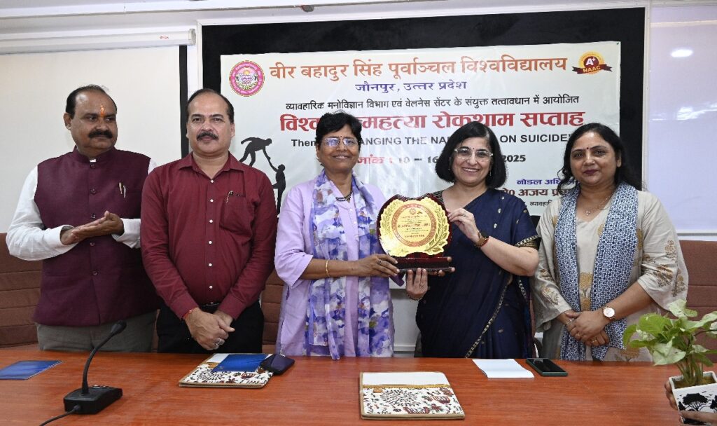 जौनपुर — वीर बहादुर सिंह पूर्वांचल विश्वविद्यालय के व्यावहारिक मनोविज्ञान विभाग एवं वेलनेस सेंटर के संयुक्त तत्वावधान में विश्व आत्महत्या रोकथाम सप्ताह का समापन संकाय भवन के कॉन्फ्रेंस हॉल में हुआ। इस अवसर पर विभिन्न प्रतियोगिताओं के प्रतिभागियों को पुरस्कृत किया गया और युवाओं को सकारात्मकता के साथ जीवन जीने का संदेश दिया गया।