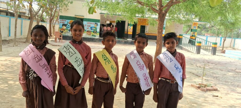 स्कूल चलो अभियान के तहत नुक्कड़ नाटक के माध्यम से अभिभावकों को अपने बच्चों को स्कूल भेजने के लिए प्रेरित किया। इसके साथ ही बच्चों को प्रतिवर्ष डीबीटी से मिलने वाली धनराशि के विषय में जानकारी दी गई ।