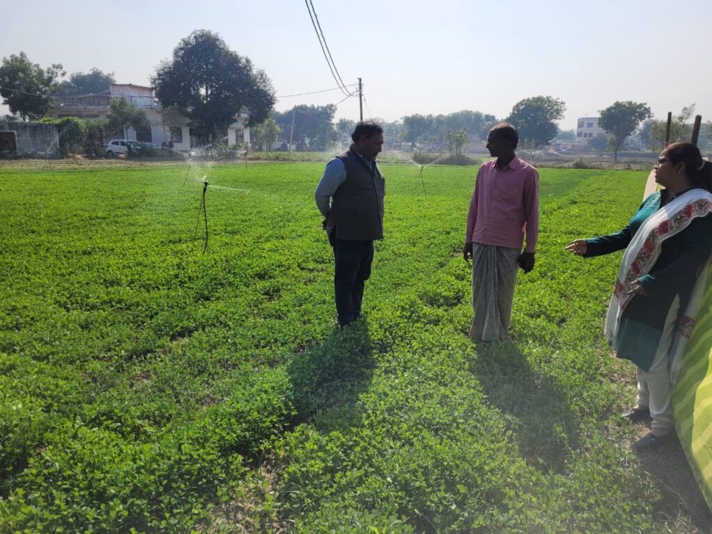 पर ड्राप मोर क्राप‘‘ माईक्रोइरीगेशन योजनान्तर्गत ड्रिंप/मिनी स्प्रिंकलर व पोर्टेबल स्प्रिंकलर सिंचाई पद्धति से कम पानी में बढ़ रहा उत्पादन