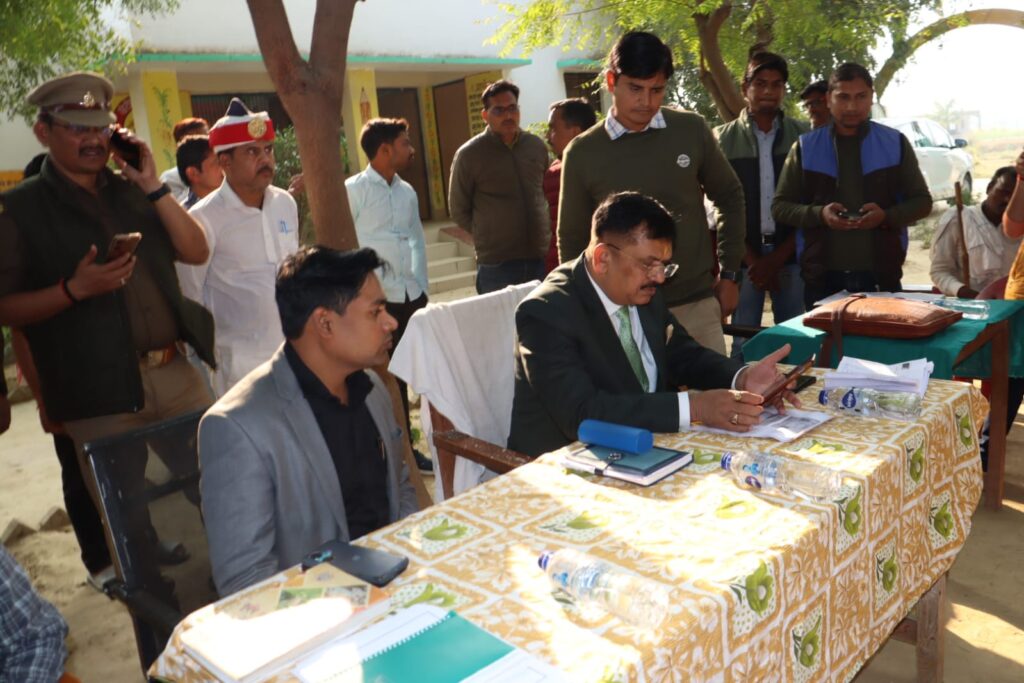जौनपुर 10 दिसम्बर — जनपद के किसानों का आधार की तर्ज पर किसान कार्ड बनाया जा रहा है, इसके लिए जिलाधिकारी डा0 दिनेश चंद्र द्वारा रोस्टर जारी कर जिले की समस्त राजस्व गांवो में शिविर लगाकर किसान रजिस्ट्री की जा रही है, इसी क्रम में मंगलवार को जिलाधिकारी डा. दिनेश चंद्र द्वारा सदर तहसील के प्राथमिक विद्यालय बिशुनपुर पुलगुजर में एग्री स्टैक योजनान्तर्गत कराए जा रहे फार्मर रजिस्ट्री कार्य का निरीक्षण किया गया।