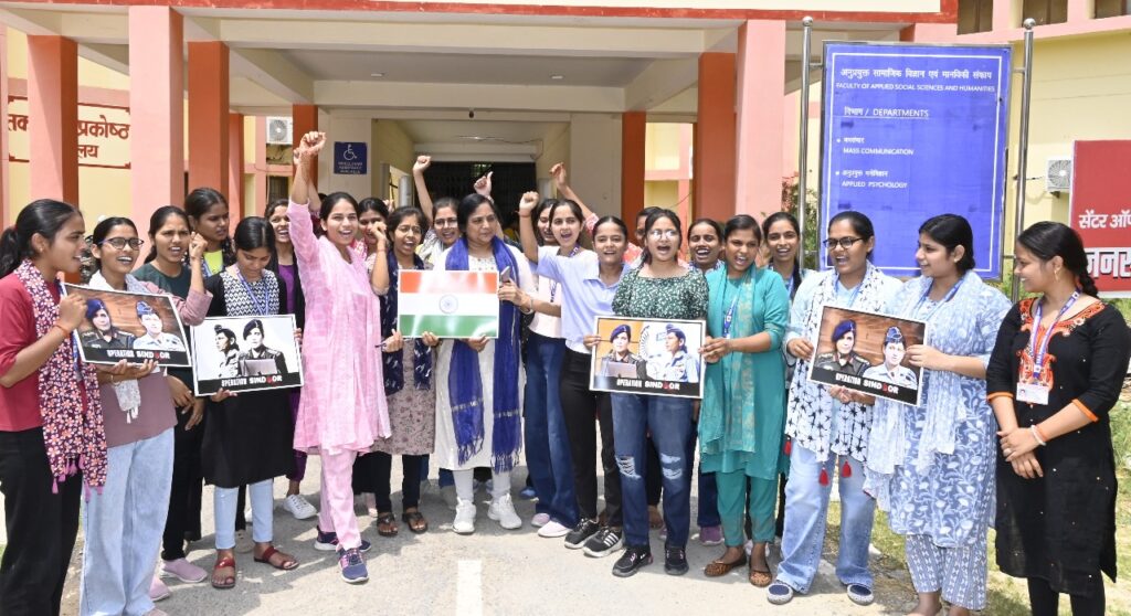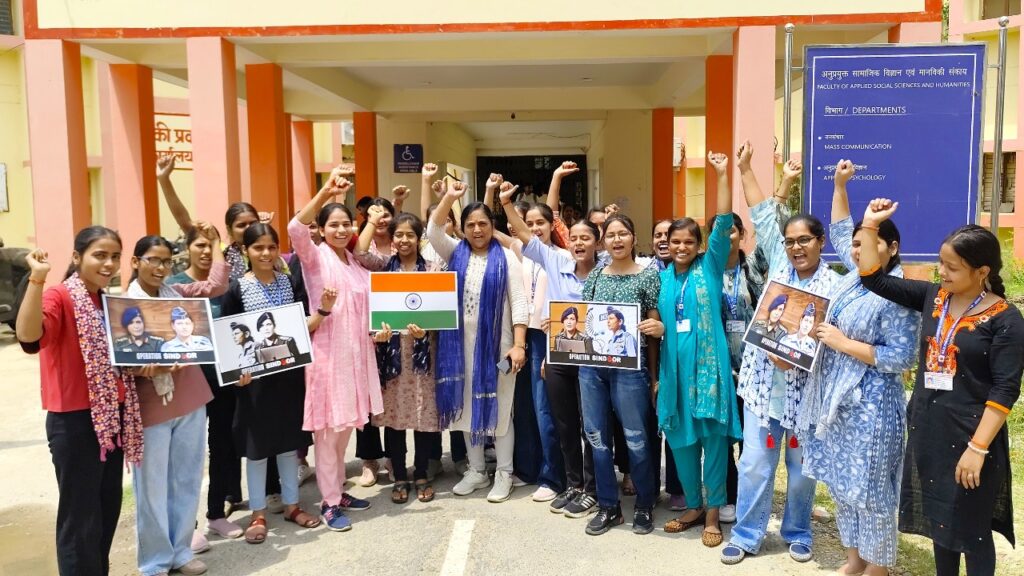 मिशन शक्ति की समन्वयक डॉ. जान्हवी श्रीवास्तव ने कहा कि हमारे विश्वविद्यालय की आज छात्राओं ने कर्नल सोफिया कुरैशी और विंग कमांडर व्योमिका सिंह की फोटो लेकर अभिनन्दन किया है और आतंकवादियों को यह यह संदेश दिया है कि इस देश की महिलाएं उनके इरादों को नाकाम करने के लिए काफी है.