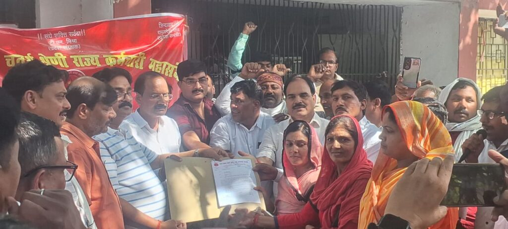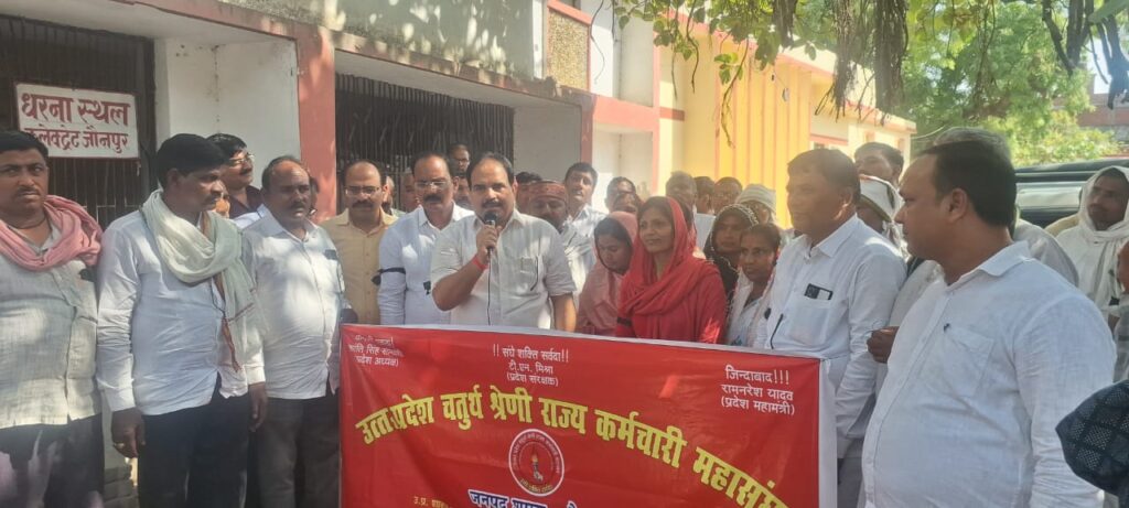 जौनपुर – पूर्व घोषित कार्यक्रम के अनुसार केंद्रीय नेतृत्व के आह्वान पर कलेक्ट्रेट परिसर जौनपुर में उत्तर प्रदेश चतुर्थ श्रेणी राज्य कर्मचारी महासंघ जौनपुर के पदाधिकारियों द्वारा अपने तीन सूत्रीय मांग पत्र को जिलाधिकारी जौनपुर के माध्यम से मा. प्रधानमंत्री भारत सरकार एवं मा. मुख्यमंत्री उत्तर प्रदेश सरकार को प्रेषित किया गया। कार्यक्रम की अध्यक्षता करते हुए जिला अध्यक्ष अजय कुमार सिंह ने बताया कि हमारी तीन सूत्रीय मांगों में पुरानी पेंशन योजना की हूबहू बहाली, निजीकरण का विरोध तथा चतुर्थ श्रेणी के पदों पर भर्ती बहाली शुरू करने से संबंधित है। इसके लिए हम लोग पिछले पांच दिनो से विरोध स्वरूप काली पट्टी बांधकर क्षेत्र में कार्य कर रहे थे तथा आज जनपद के विभिन्न कर्मचारी संगठनों के साथ अपनी मांग के समर्थन में जिलाधिकारी महोदय के माध्यम से देश एवं प्रदेश के शीर्ष नेतृत्व को ज्ञापन प्रेषित किया गया है। सिरकोनी विकासखंड की अध्यक्ष अनामिका सिंह ने कहा कि सरकार महिला सशक्तिकरण की बात तो करती है लेकिन सभी विभागों की महिला कर्मचारियों को उनके मूल अधिकारों से वंचित किया जा रहा है जो अन्यायपूर्ण है हम लोग मिलकर संघर्ष करेंगे। कार्यक्रम के विशिष्ट अतिथि राज्य कर्मचारी संयुक्त परिषद के जिला अध्यक्ष डॉ प्रदीप सिंह ने कहा कि कर्मचारियों की मांगों को लेकर सरकार दोहरी मानसिकता से कार्य कर रही है। आज सेवानिवृत्त से लेकर सेवारत सभी कर्मचारी एवं शिक्षक पुरानी पेंशन की बहाली, आठवें वेतन आयोग की अनुशंसा सहित विभिन्न कर्मचारी हित के मुद्दों पर असहज, सशंकित एवं व्यथित हैं। आगामी समय में विभिन्न मुद्दों पर निर्णायक निर्णय होने तक संघर्ष जारी रहेगा। कार्यक्रम में होम्योपैथिक एवं फार्मासिस्ट संघ के जिला अध्यक्ष राजेश कुमार यादव, ग्राम विकास अधिकारी संघ के जिला मंत्री रामकृष्ण पाल, कलेक्ट्रेट कर्मचारी संघ के अध्यक्ष विजय प्रताप सिंह, उ० प्र० ग्राम पंचायत राज सफाई कर्मचारी संघ के जिला अध्यक्ष अमर बहादुर यादव एवं जिला मंत्री तेज बहादुर “राना”, चतुर्थ श्रेणी के संरक्षक सरताज सिंह, वरिष्ठ उपाध्यक्ष केसरी प्रसाद ,मुफ्तीगंज अध्यक्ष सी पी सिंह, बबलू श्रीवास्तव, दिनेश यादव,अरुण कुमार यादव, विपिन यादव, ज्ञानचंद, अखिलेश यादव, इंद्रसेन, अशोक कुमार,अजय लाल मौर्य,प्रमोद शर्मा, रामलाल पाल,आईटीआई संघ से धर्मेंद्र सिंह,शिव कुमार, निर्मल गुप्ता, महिला मोर्चा जिला अध्यक्ष मधुबाला मौर्य,सुशीला देवी, सविता दुबे,निर्मला यादव,प्रिया गुप्ता आदि सैकड़ो कर्मचारी पदाधिकारी उपस्थित रहे। कार्यक्रम का संचालन जिला मंत्री सभाजीत यादव ने किया।
