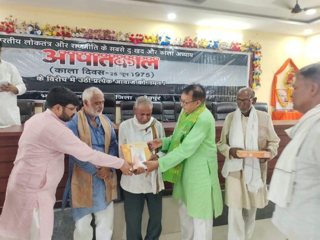 जौनपुर– भारतीय जनता पार्टी के जिलाध्यक्ष पुष्पराज सिंह के अध्यक्षता मे सीहीपुर स्थित भाजपा कार्यालय पर काला दिवस मनाया गया।मुख्य अतिथि प्रदेश प्रवक्ता अशोक पाण्डेय और विशिष्ट अतिथि के रूप मे लोकतंत्र सेनानी के जिलाध्यक्ष एव पूर्व विधायक सुरेंद्र प्रताप सिंह उपस्थित रहे।