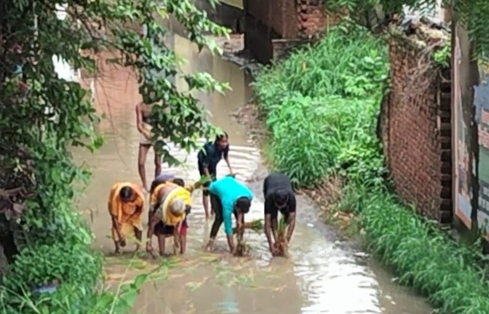 भुवालापट्टी के लोगों ने सड़क पर की धान की रोपाईजनप्रतिनिधि कुम्भकर्णी निद्रा में लीन, जनता परेशान