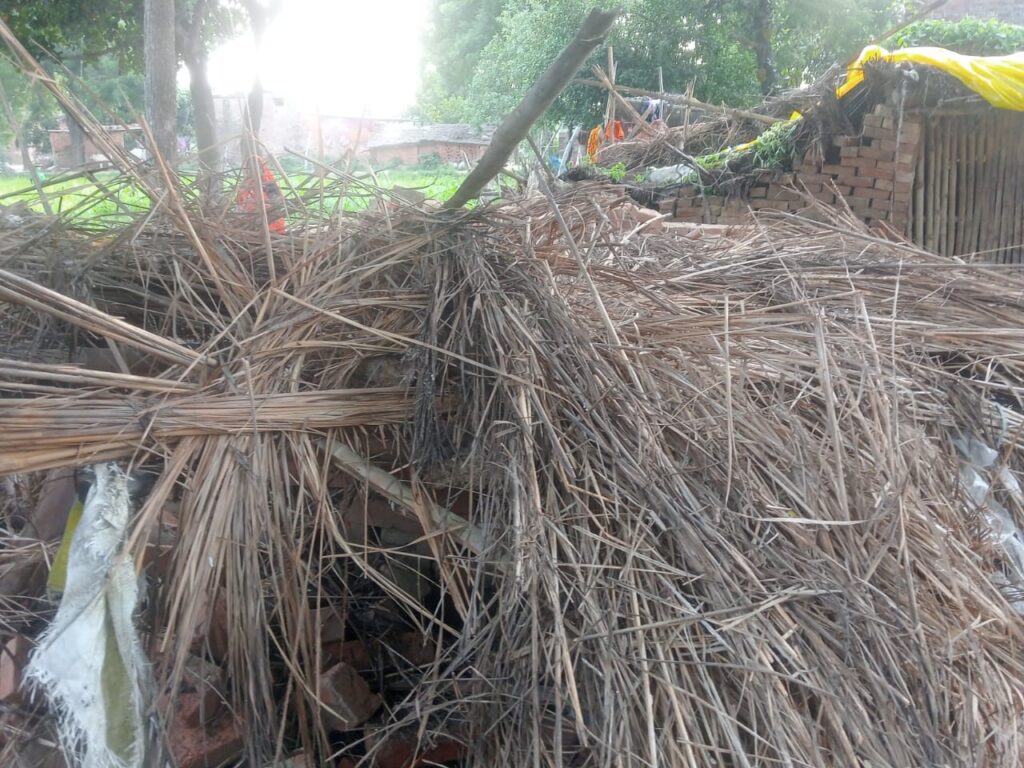 जब उन्हें मना किया गया तब वे लोग रिहायशी मड़हे में घुस कर मारने पीटने लगे।लोगों के बीचबचाव के बाद वे जान बची।उसके बाद उन लोगों ने मड़हे को गिरा दिया।घटना के बाद पूरा परिवार दहशत में है।