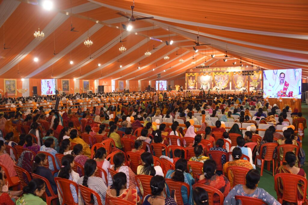 महाराज जी ने कहा कि हर युग में उत्पाती रहते हैं फिर भी और युग से कलयुग में उत्पातियों की संख्या बहुत कम है। यह कथा सेवा भारती के बैनर तले चल रही है।
