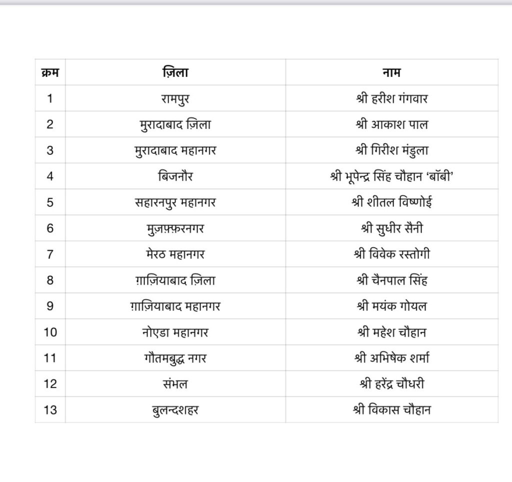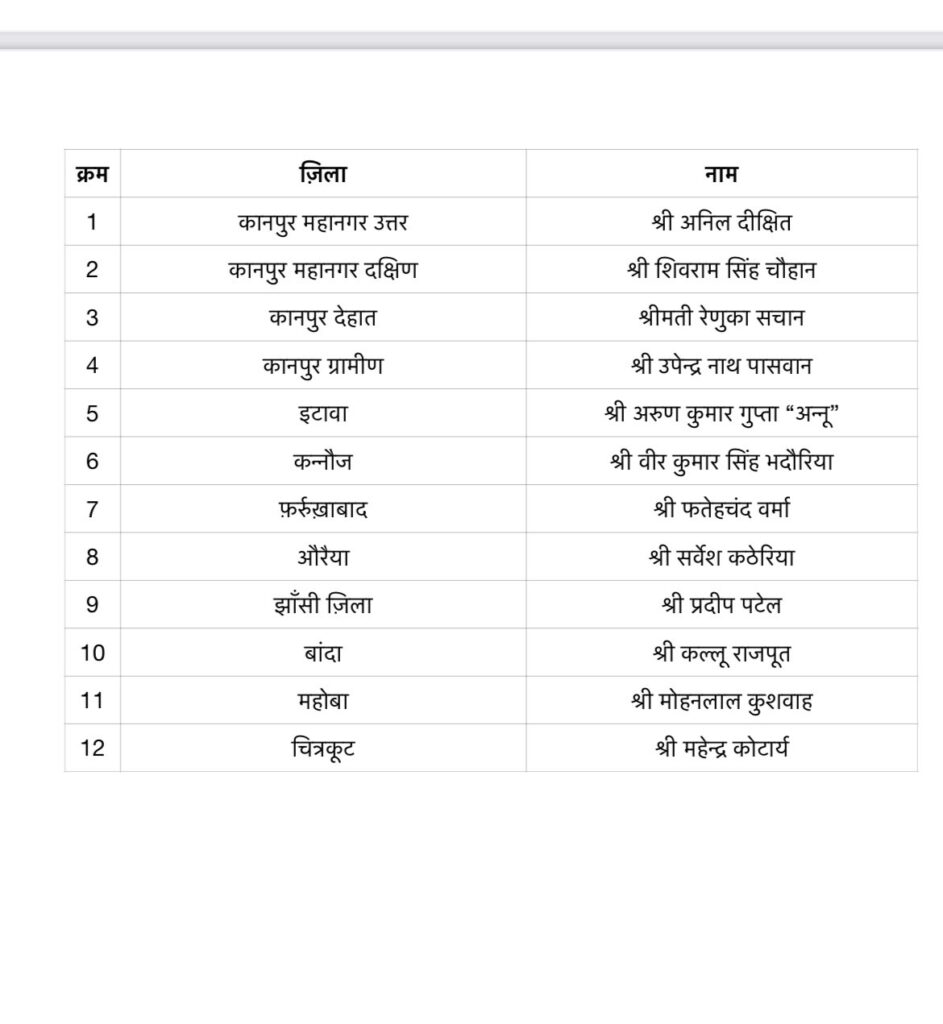 🔹बीजेपी जिला अध्यक्ष, महानगर अध्यक्षों की घोषणा
