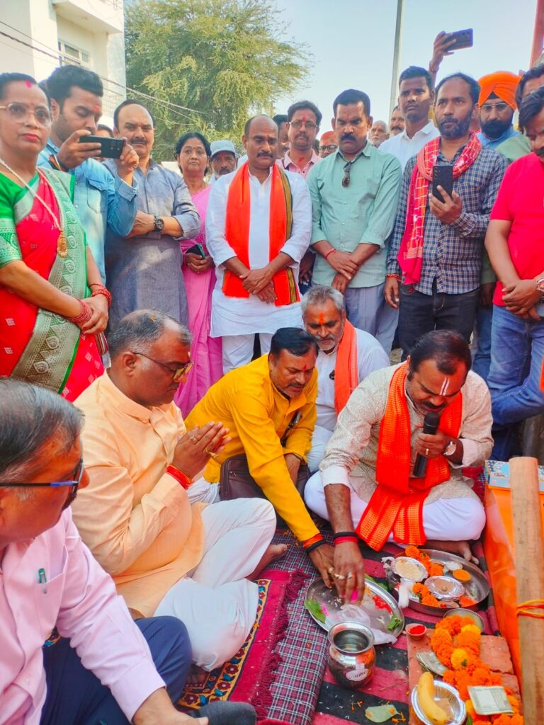 राज्य मंत्री गिरीश चंद्र यादव ने 01 करोड़ 6लाख की लागत से शहर के बड़े हनुमान जी मंदिर के पुनर्निर्माण हेतु किया शिलान्यास कर किया शुभारम्भ