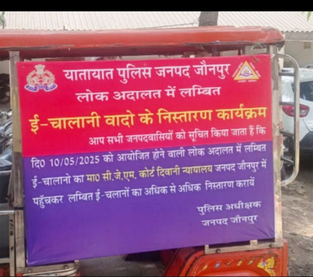 साथ ही जन सामान्य से अपील की जा रही कि जिन लोगों का एमबी एक्ट के अंतर्गत ऑनलाइन चालान पूर्व से लंबित चल रहा है, वे 10 मई को जौनपुर न्यायालय में आयोजित होने वाली लोक अदालत में पहुंचकर अपने प्रकरण को सुगमतापूर्वक निस्तारण करायें।