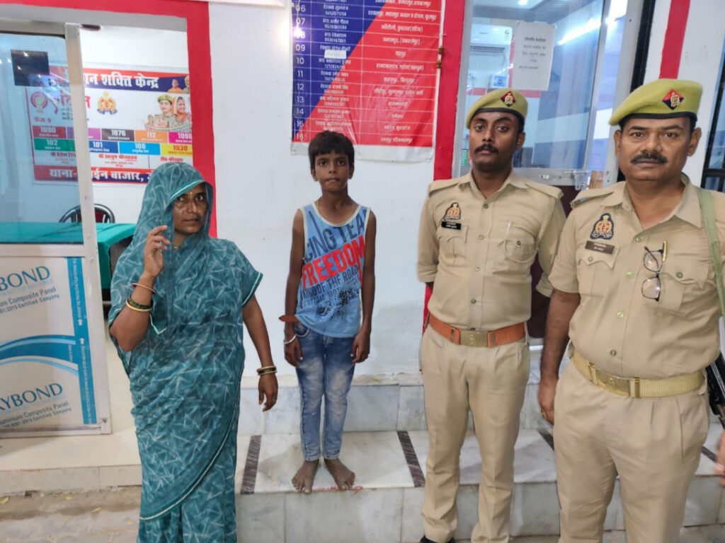जौनपुर -जिला पुलिस प्रमुख डॉ0कौस्तुभ के दिश निर्देशन में प्रभारी निरीक्षक लाइन बाजार सतीश सिंह के कुशल नेतृत्व में आज थाना लाइन बाजार पर आवेदिका श्रीमती सरोजा देवी पत्नी विक्की सोनकर निवासी मातापुर थाना लाइन बाजार जौनपुर द्वारा सूचना दी गयी कि मेरा भतीजा शिवम सोनकर उर्फ लल्ला सोनकर पुत्र सागर सोनकर उम्र करीब 12 वर्ष है जो घर से बिना बताये कही चला गया है, प्राप्त सूचना को तत्काल संज्ञान में लेते हुआ थाना स्थानीय के चौकी प्रभारी/कोबरा मोबाइल/क्राइम टीम को सक्रिय करते हुये थाना पुलिस टीम द्वारा परिजनो के सहयोग से आवेदिका सरोजी देवी उपरोक्त के भतीजा शिवम सोनकर उर्फ लल्ला सोनकर उपरोक्त को सूचना मिलने के 04 घण्टे के अन्दर सकुशल बरामद कर परिजनो को सुपुर्द किया गया ।