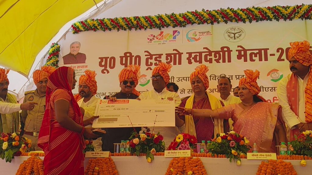 शहर के बीआरपी कॉलेज के मैदान में यूपी ट्रेड शो स्वदेशी मेला 2025 का हुआ शुभारंभ