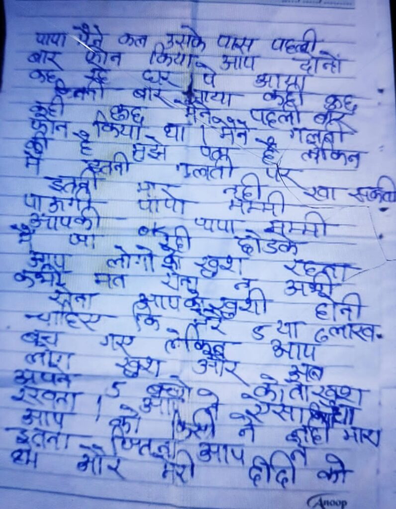 सुसाइड नोट में लिखा आप हमेशा खुश रहना पापा.
