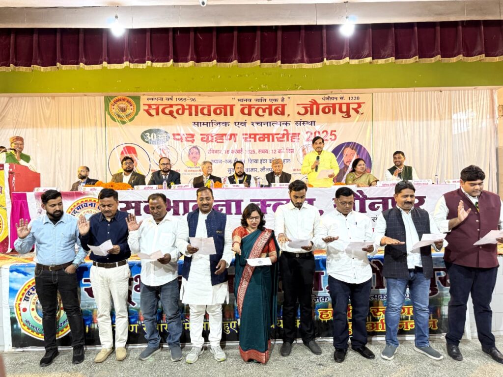 जौनपुर. नगर के शिया कॉलेज हाल में सद्भावना क्लब का 30वां शपथ ग्रहण समारोह सम्पन्न हुआ जहां मुख्य अतिथि जगदीश नारायण राय विधायक ज़फराबाद ने नवचयनित अध्यक्ष मोहम्मद रज़ा खान को पद एवं गोपनीयता की शपथ दिलायी।