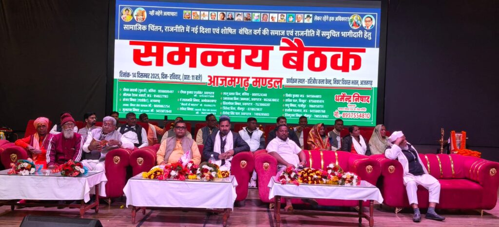 जनपद मुख्यालय स्थित हरिऔध कला केंद्र परिसर में रविवार को भगवान निषाद राज जनसेवा समिति के तत्वावधान में एक ऐतिहासिक समन्वय बैठक का आयोजन किया गया। कार्यक्रम में सामाजिक समरसता को मजबूत करने और राजनीति में दलित, पिछड़े व अल्पसंख्यक वर्गों की एकजुटता सुनिश्चित करने पर विस्तार से चर्चा हुई। मौके पर बड़ी संख्या में सामाजिक कार्यकर्ता, बुद्धिजीवी और विभिन्न जनपदों से आए प्रतिनिधि मौजूद रहे।
