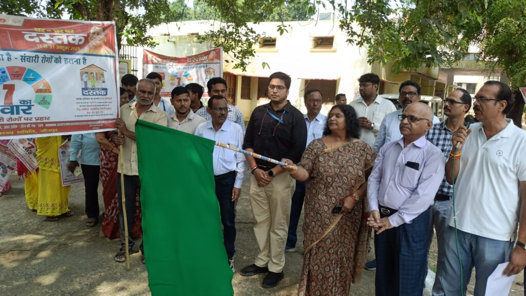 जौनपुर 05 अक्टूबर—- आज 05 अक्टूबर को जिला टी.बी. चिकित्सालय जौनपुर परिसर से मुख्य चिकित्सा अधिकारी डॉ0 लक्ष्मी सिंह द्वारा संचारी रोग नियंत्रण एवं दस्तक अभियान अक्टूबर 2025 का संचारी शपथ, स्लोगन, प्रचार-प्रसार वाहन, बैनर पोस्टर के साथ जन जागरूकता रैली को हरी झंडी दिखाकर किया गया। रैली टी.बी. हॉस्पिटल से गांधी तिराहा तक जाकर पुनः टी बी हॉस्पिटल पहुंच कर समाप्त हुई ।