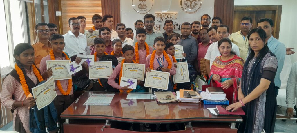 उक्त कार्यक्रम में जिलाधिकारी डा0 दिनेश चन्द्र मुख्य अतिथि एवं मुख्य विकास अधिकारी साई तेजा सीलम विशिष्ट अतिथि के रुप में उपस्थित रह कर बच्चों को अभिप्रेरित भी किया गया।