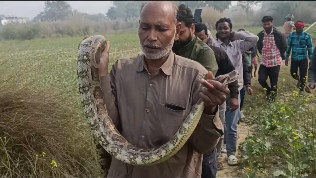 सुल्तानपुर गांव में विशाल अजगर दिखने से हड़कंप,वन विभाग के इंतजार में परेशान ग्रामीणों ने सपेरे की मदद से पकड़ा