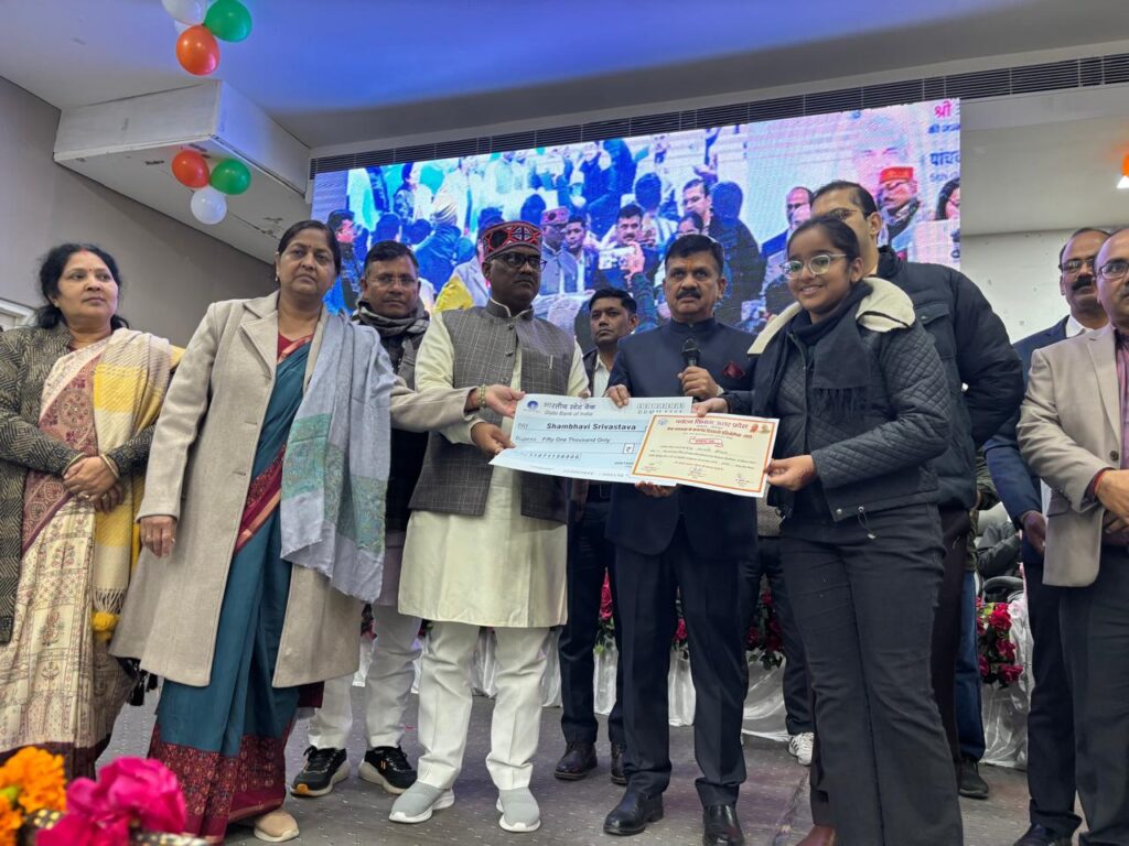 सुशासन दिवस के अवसर पर प्रेक्षा गृह में आयोजित भव्य कार्यक्रम में उत्तर प्रदेश सरकार के मंत्री गिरीश चन्द्र यादव, सांसद सीमा द्विवेदी, जिलाधिकारी डॉ. दिनेश चंद्र सिंह एवं मुख्य विकास अधिकारी ध्रुव खड़िया ने शाम्भवी को प्रमाण पत्र एवं ₹51,000 की धनराशि पुरस्कार स्वरूप प्रदान की।