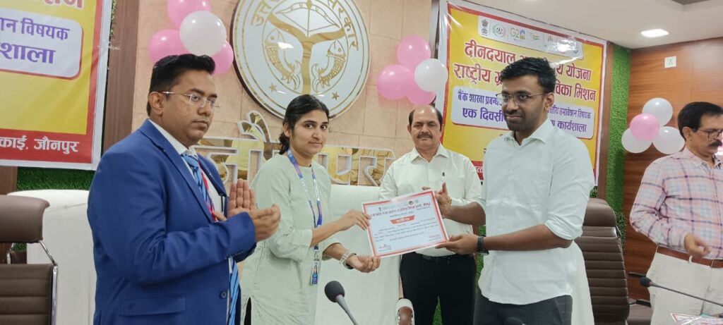 जौनपुर – जिलाधिकारी रविन्द्र कुमार माँदड़ के निर्देश के क्रम में मुख्य विकास अधिकारी साई तेजा सीलम की अध्यक्षता में कलेक्ट्रेट सभागार में बैंक शाखा प्रबन्धकों, मिशन स्टाफ व बैंक सखियों का सूक्ष्म वित्त एवं वित्तीय समायोजन विषयक एक दिवसीय कार्यशाला का आयोजन किया गया, जिसमें जनपद के सभी बैंकों के लगभग 200 शाखा प्रबन्धकों, 42 मिशन स्टाफ, समस्त सहायक विकास अधिकारी (आईएसबी) और सभी विकास खण्ड के 30 बैंक सखियों के द्वारा प्रतिभाग किया।