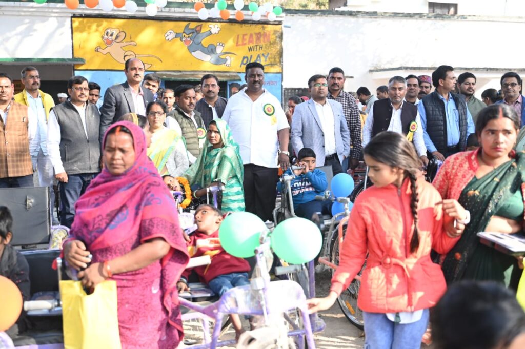 इस दौरान समेकित शिक्षा के तहत दिव्यांग बच्चों की शिक्षा सुगम बनाने के लिए दिव्यांग बच्चों को उपकरण वितरित किया गया।