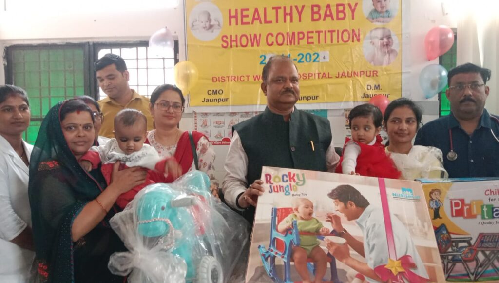 जौनपुर। जिला महिला चिकित्सालय के सभागार कक्ष में हेल्दी बेबी शो प्रतियोगिता का आयोजन किया गया। मुख्य चिकित्सा अधीक्षक, डा० महेन्द्र कुमार गुप्ता की देख-रेख में बाल रोग विशेषज्ञ डा० सन्दीप कुमार सिंह, एवं रितू प्रिया सिंह ने एक वर्ष तक के बच्चों का कई मानकों के आधार पर चयन किया, जिसमें संस्थागत प्रसव, तुरन्त स्तनपान तथा छः माह तक पूर्ण स्तनपान तथा सम्पूर्ण टीकाकरण शामिल था। प्रतियोगिता में प्रथम स्थान श्री सिंह पुत्री ज्योति सिंह, द्वितीय स्थान हर्ष पुत्र सपना सिंह, तृतीय स्थान आकृति साहू पुत्री ममता साहू ने प्राप्त किया, जिन्हें चिकित्सकों द्वारा पुरस्कृत किया गया। शेष प्रतिभागी बच्चों को सांत्वना पुरस्कार दिया गया। कार्यक्रम का संचालन “काउंसलर” डा० सीमा सिंह ने किया’ साथ में पंकज, संजय, शैलेन्द्र गुप्ता कनिष्ठ सहायक सहित अन्य स्टाफ ने सहयोग किया।