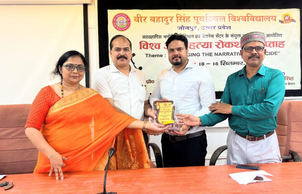 जौनपुर। वीर बहादुर सिंह पूर्वांचल विश्वविद्यालय, जौनपुर में व्यावहारिक मनोविज्ञान विभाग एवं वेलनेस सेंटर के संयुक्त तत्वावधान में संकाय भवन के कांफ्रेंस हाल में विश्व आत्महत्या रोकथाम दिवस मनाया गया. विश्वविद्यालय द्वारा विश्व आत्महत्या रोकथाम सप्ताह का आयोजन 10 से 16 सितम्बर 2025 तक किया जा रहा है। इस वर्ष का थीम “आत्महत्या के विषय पर दृष्टिकोण और संवाद को बदलना” है।