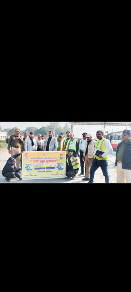 जौनपुर। परिवहन आयुक्त के पत्र द्वारा प्रदेश में बढ़ती सड़क दुर्घटनाओं में घायलों/मृतकों की संख्या में कमी लाये जाने एवं आम जनमानस में सड़क सुरक्षा के प्रति जागरूकता लाये जाने के उद्देश्य से परिवहन विभाग द्वारा 1 से 31 जनवरी तक राष्ट्रीय सड़क सुरक्षा माह मनाया जा रहा है। उक्त के अन्तर्गत 20 जनवरी को सम्भागीय परिवहन अधिकारी (प्रवर्तन) वाराणसी मनोज वर्मा के नेतृत्व में सड़क सुरक्षा जनजागरूकता अभियान चलाया गया। अभियान के क्रम में हौज टोल प्लाजा पर बिना रेफ्लेक्टर लगे वाहनों पर रेफ्लेक्टर लगाया गया एवं सड़क सुरक्षा एवं यातायात नियमों के प्रति जागरूक किया गया। इस अवसर पर सहायक सम्भागीय परिवहन अधिकारी (प्रवर्तन) सत्येन्द्र सिंह, यात्री कर/माल कर अधिकारी प्रमोद कुमार, यातायात निरीक्षक सुशील मिश्रा, हौज टोल के मैनेजर बालकृष्ण दुबे, गायत्री प्रोजेक्ट से मनीष, रोड सेफ्टी मैनेजर पवन सिंह, यातायात पुलिस, प्रवर्तन कार्मिक आदि मौजूद रहे।