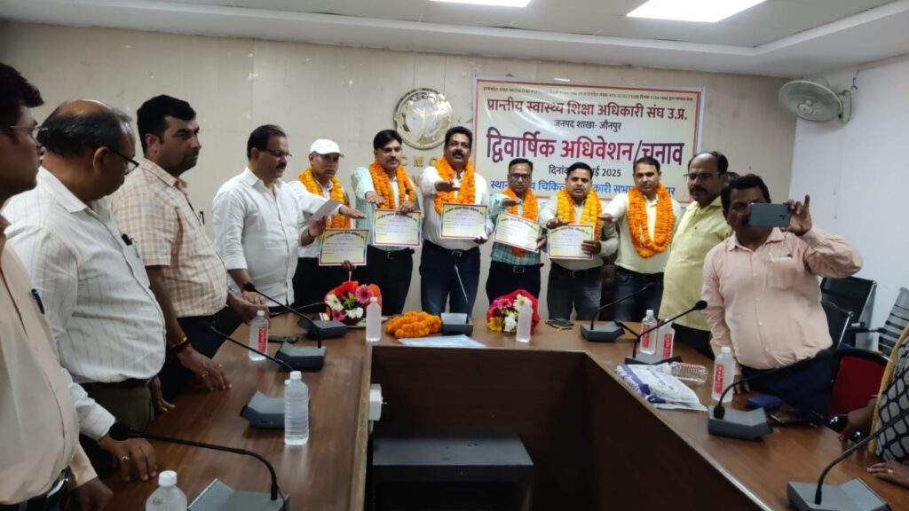 जौनपुर – मुख्य चिकित्सा अधिकारी सभागार जौनपुर में प्रांतीय स्वास्थ्य शिक्षा अधिकारी संघ जनपद शाखा जौनपुर का द्विवार्षिक अधिवेशन/चुनाव संपन्न हुआ। कार्यक्रम की अध्यक्षता राज्य कर्मचारी संयुक्त परिषद जौनपुर के जिला अध्यक्ष डॉ0 प्रदीप सिंह ने किया।