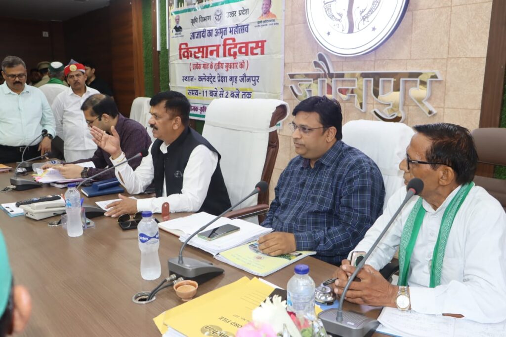जौनपुर – जिलाधिकारी डॉ0 दिनेश चंद्र की अध्यक्षता में कलेक्ट्रेट सभागार में किसान दिवस का आयोजन किया गया। किसान दिवस के अवसर पर पशुपालन विभाग, कृषि विभाग, विद्युत विभाग, उद्यान विभाग सहित विभिन्न विभागों के द्वारा संचालित योजनाओं के संबंध में विस्तार से जानकारी किसानों को दी गई।