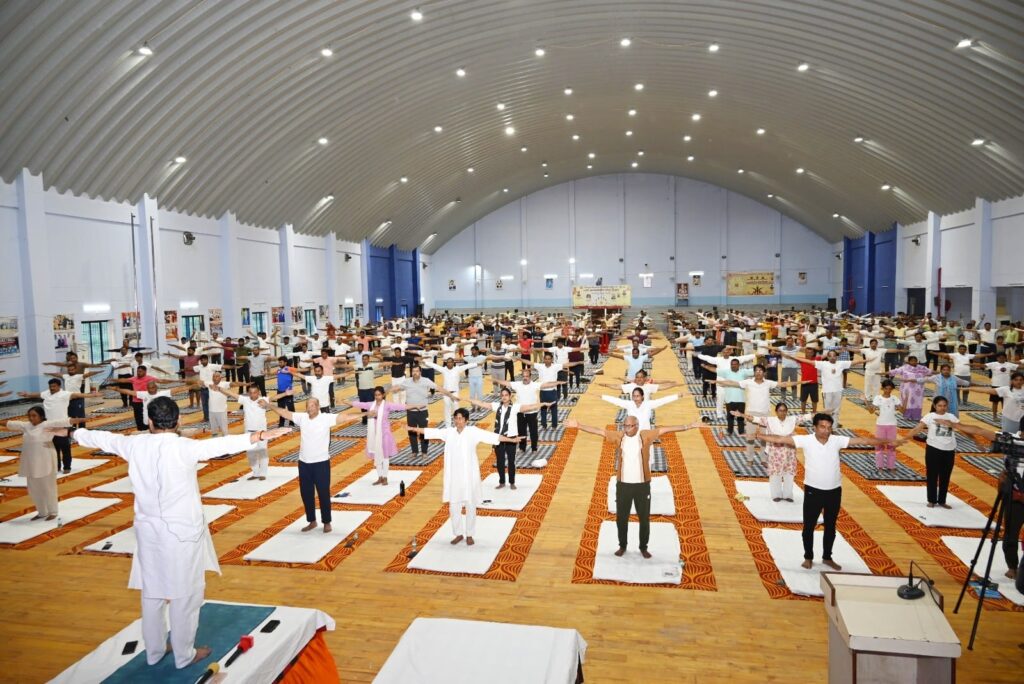 पीयू में सामूहिक सूर्य नमस्कार से गूंजा योग का सूर्योदय