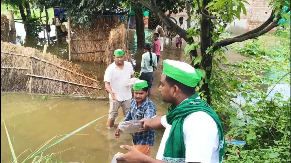 गोमती नदी के बढ़ते जलस्तर से बीरभानपुर गांव के छ परिवार बाढ़ से प्रभावित है ऐसे में पूर्वांचल किसान संगठन के किसान नेता अजीत सिंह ने दरियादिली दिखाते हुए स्वयं परिवारों तक जाकर खाद्य सामग्री पहुंचाई और उनकी समस्या भी सुनी।खाद्य सामग्री पाकर बाढ पीड़ित परिवारों के चेहरे खिल गए।