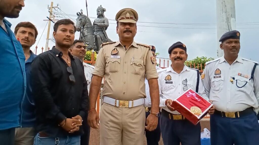 मोटिवेशनल वीडियो बनवाने में प्रशासन की मदद करने पर यातायात पुलिस द्वारा के के जौनपुरिया युटयुबर्स को किया गया सम्मानित